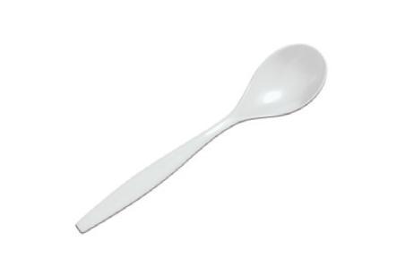 Cuillère à soupe réutilisable blanche en SAN, 19.5 cm.